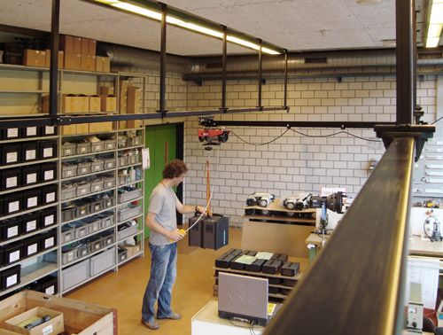 Deckenschienen Roof-Track als rückenschonende Arbeitshilfe im Prüflabor