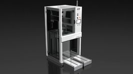 Um den Palettierer einfach und schnell zu reinigen, sind die Hubachse sowie das Produkthandling komplett mit Edelstahl verkleidet. Die Metallbandabdeckung verhindert zudem die Abgabe von Partikeln an die Umgebung. Zum Boden hin ist das System geschlossen und kann auf Wunsch abgedichtet werden. Die Energieführungen sind in der Anlage integriert. Die Hubachsen sind servogesteuert und mit Absolutwertgebern ausgerüstet. Sie nehmen beladene Trays mit einem Gewicht bis zu 20 Kilogramm auf. Die Traywechselzeit beträgt weniger als 5 Sekunden. In knapp 20 Sekunden wechselt das Palettiersystem den Palettenstapel. Das Produkthandling kann inklusive Greifer Bauteile mit einem Gewicht bis 5 Kilogramm und einer Wiederholgenauigkeit von ±0,05 Millimetern aufnehmen.