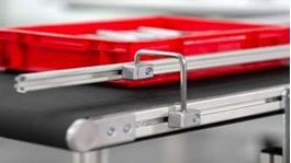Relingsysteme von item unterstützen den sicheren und schonenden Warentransport. Zudem ermöglicht die Reling den Übergang von einer Förderstrecke zur nächsten.